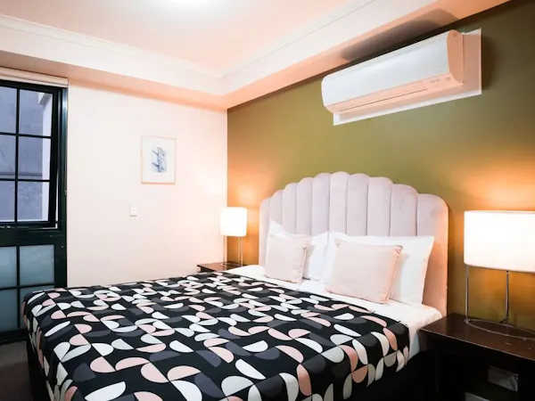 Perfect for families, groups, and business travellers seeking extra space and privacy, this well-appointed two-bedroom apartment offers a smart and comfortable floor plan ideal for longer or shared stays. One bedroom features a queen bed, while the second bedroom includes two single beds, providing flexible accommodation options. The apartment includes a full kitchenette with oven, microwave and small fridge, a modern bathroom with bathtub, Free Wi-Fi, and both an openable window and private balcony with city views, creating a light-filled and relaxing environment. Conveniently located near Southern Cross Station, Docklands and Marvel Stadium, the apartment places Melbourne’s CBD, dining precincts and business hubs within easy reach.