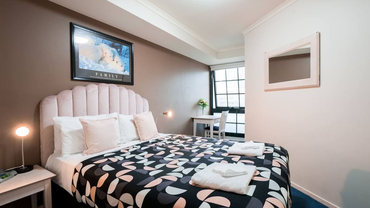 Perfect for families, groups, and business travellers seeking extra space and privacy, this well-appointed two-bedroom apartment offers a smart and comfortable floor plan ideal for longer or shared stays. One bedroom features a queen bed, while the second bedroom includes two single beds, providing flexible accommodation options. The apartment includes a full kitchenette with oven, microwave and small fridge, a modern bathroom with bathtub, Free Wi-Fi, and both an openable window and private balcony with city views, creating a light-filled and relaxing environment. Conveniently located near Southern Cross Station, Docklands and Marvel Stadium, the apartment places Melbourne’s CBD, dining precincts and business hubs within easy reach.